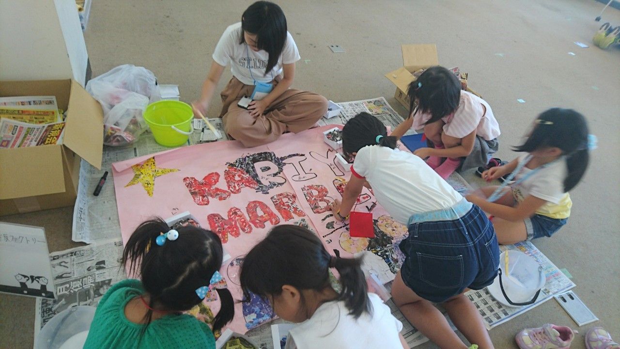 かりやマーブルタウンの看板を作る様子。最後、まちを彩りました。